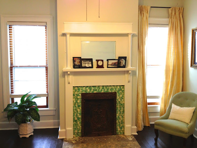 I had to hurry to take these after photos for y'all, so you'll notice that I only have one set of curtains hung! Sorry for the lopsided look, but hey, I figured it was actually better this way for this particular post, since you can better see the finished molding... So in a way, I'm doing you a favor;)