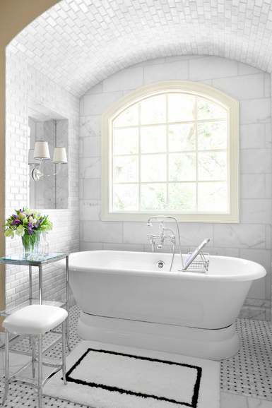 The focal point of the room as you enter is the bathtub, which they want to replace, and the question is whether to install a traditional built in or a large, freestanding soaker tub. I love the lines of these soakers, and the fact that it isn't built in visually opens up the space, but I've never had one before. Are there drawbacks?