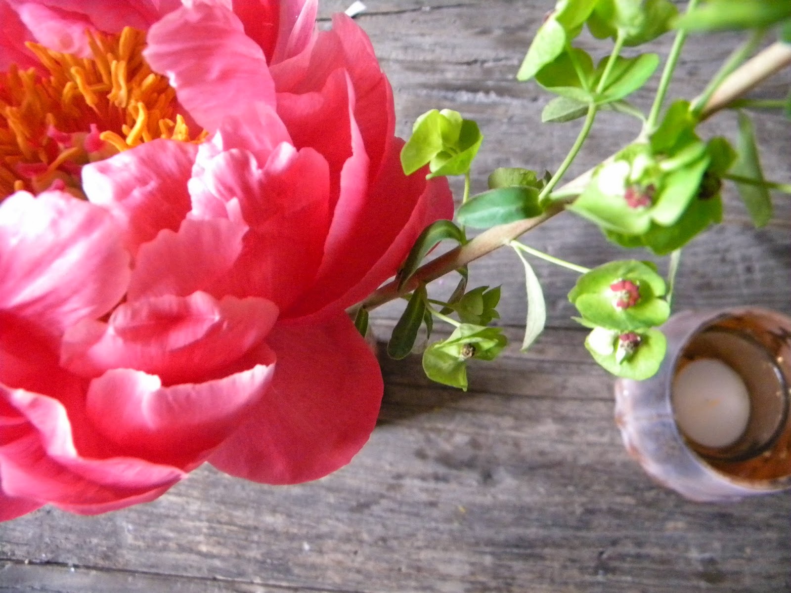 The simple touch of coral peonies has done the trick. The simple burst in color, shape, and texture has brought our table setting to life, even if it is just three old friends sharing a humble meal. I say add simple touches to elevate any occasion, especially a meal with dear friends.